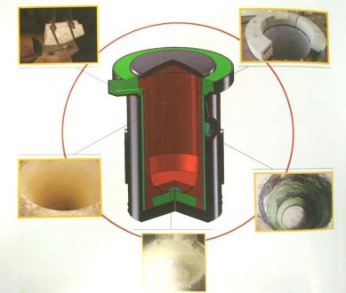 為了能使方便在拆解推出需要重新施工的爐襯時,我們一般都會使用備襯,也叫滑動平面層,使用備襯能省力的去除需要重新施工的爐襯,同時還能起到一個保護線圈漿料的作用,我們現(xiàn)在使用石棉布為備襯,石棉布在作為背襯使用方面一直有其不可避免的缺點,首先是其石棉成分對人體健康的影響,因為石棉纖維在被人體吸入肺部后是很難排出體外的,嚴重的還會產(chǎn)生致癌性,所以大家無論是在工作中的任何作業(yè)時都應該配備好公司所配發(fā)的勞保用品。第二,就是石棉布的韌性不夠,我們在爐底和爐襯施工時經(jīng)常有不小心碰到石棉布而造成石棉布破損,給我們帶來不小的麻煩,而這些破損處如果萬一沒有及時處理就有可能有影響爐襯安全的問題出現(xiàn)。還有一點就是其熱導率的問題,石棉本身就是一種隔熱物體,在我們的爐襯使用中爐襯一直有著比較分明的溫度梯度,由于石棉布的熱導率較差和其厚度過厚等原因會影響到爐襯的熱損效果造成爐襯松散層厚度減少,這給我們的生產(chǎn)使用過程帶來一定的安全隱患。由于石棉布存在著以上缺點,現(xiàn)在一些鑄造廠家都在使用云母紙來替代石棉布,云母紙有較好的韌性,而且其厚度只有0.32毫米,根本不會影響到爐襯的溫度梯度。另外由于云母紙的不透氣性也能大大降低爐襯在燒結(jié)過程中由于爐襯料中的水氣問題造成的誤報警次數(shù)等這些優(yōu)點使云母紙迅速的普遍作為備襯使用。在鋪設備襯前要根據(jù)電爐的大小高度提前準備好,鋪設時先清除上次遺留在爐壁上的材料,清除干凈后才能鋪設,鋪設時要一人下到爐膛內(nèi)部,另一人則站在爐子上面把備襯料垂直放下,長度為超出爐底頂出塊10-20CM最好,然后由爐內(nèi)人員負責將它捋平,讓其緊貼爐壁,然后在放第二塊備襯,放第二塊備襯時要和第一塊重疊搭接10CM左右,防止加爐襯料時沖開備襯,依次類推放下其剩余備襯料,直到把爐子線圈完全遮住.